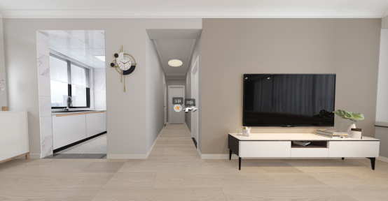 进门是一面白色的“墙”,而原木风的家拆正在必然程度上就可以或许给取人一种很俭朴、很天然又很舒
